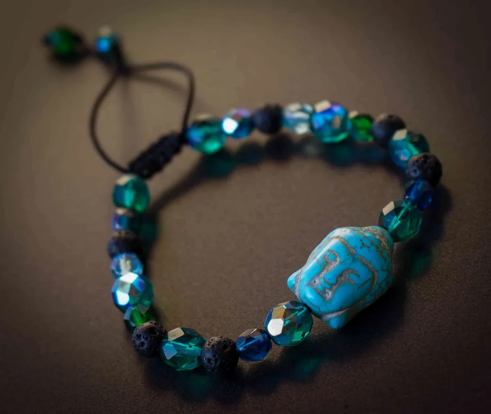 Buddha Náramek Aqua je ručně vyráběný náramek.