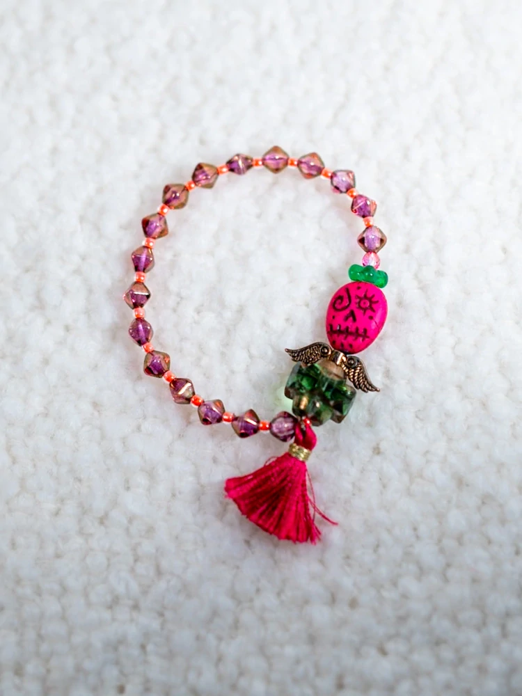 Vstupte do světa symboliky, barev a jedinečné energie s náramkem Dia de Los Muertos, který Vás zaujme svou dominantní neonovou cukrovou lebkou ikonou tradičního mexického svátku Día de los Muertos.