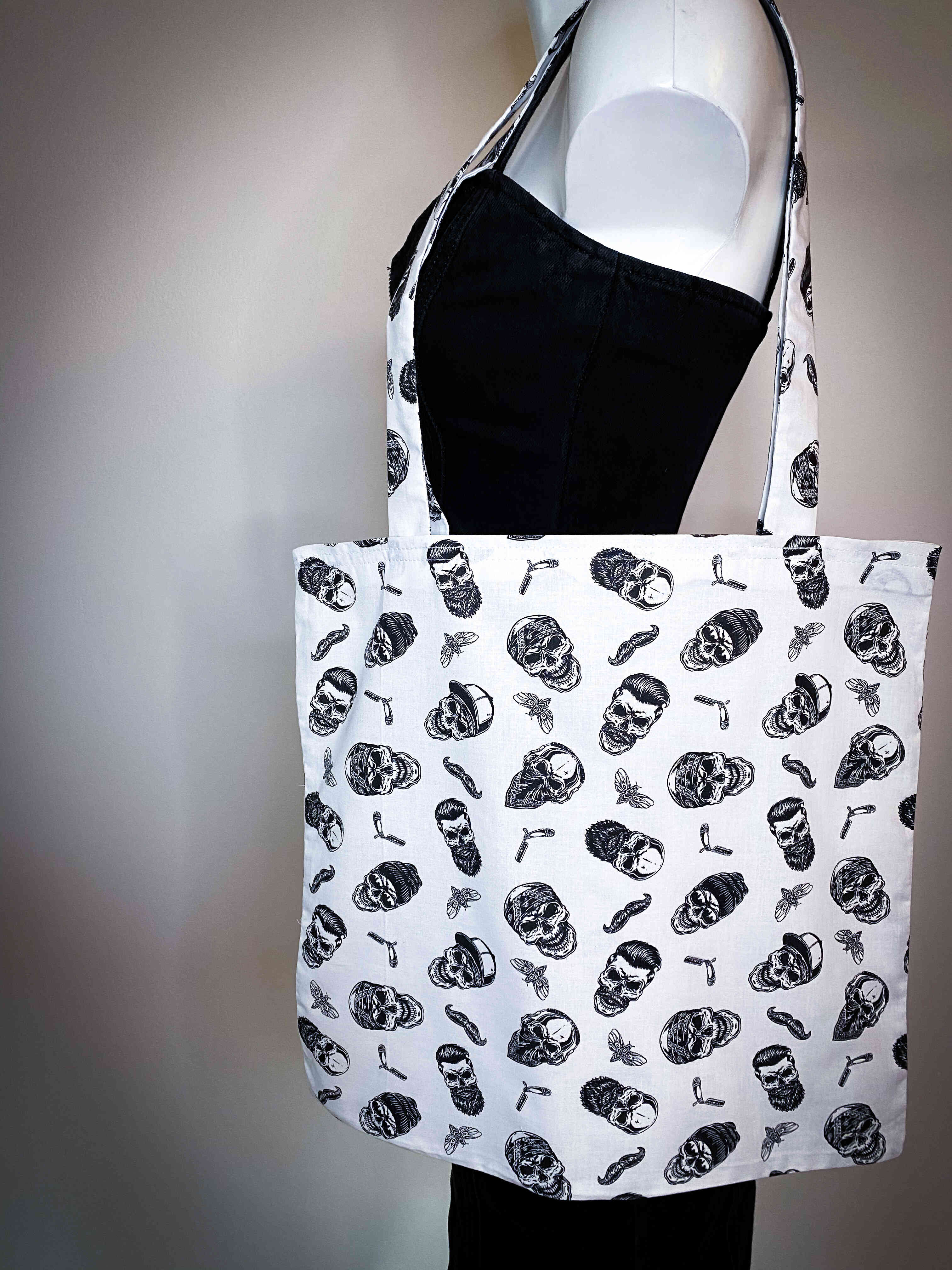 Představujeme Vám Plátěnou Tašku Lebka Barber, která spojuje rebelii s elegancí a praktičností.