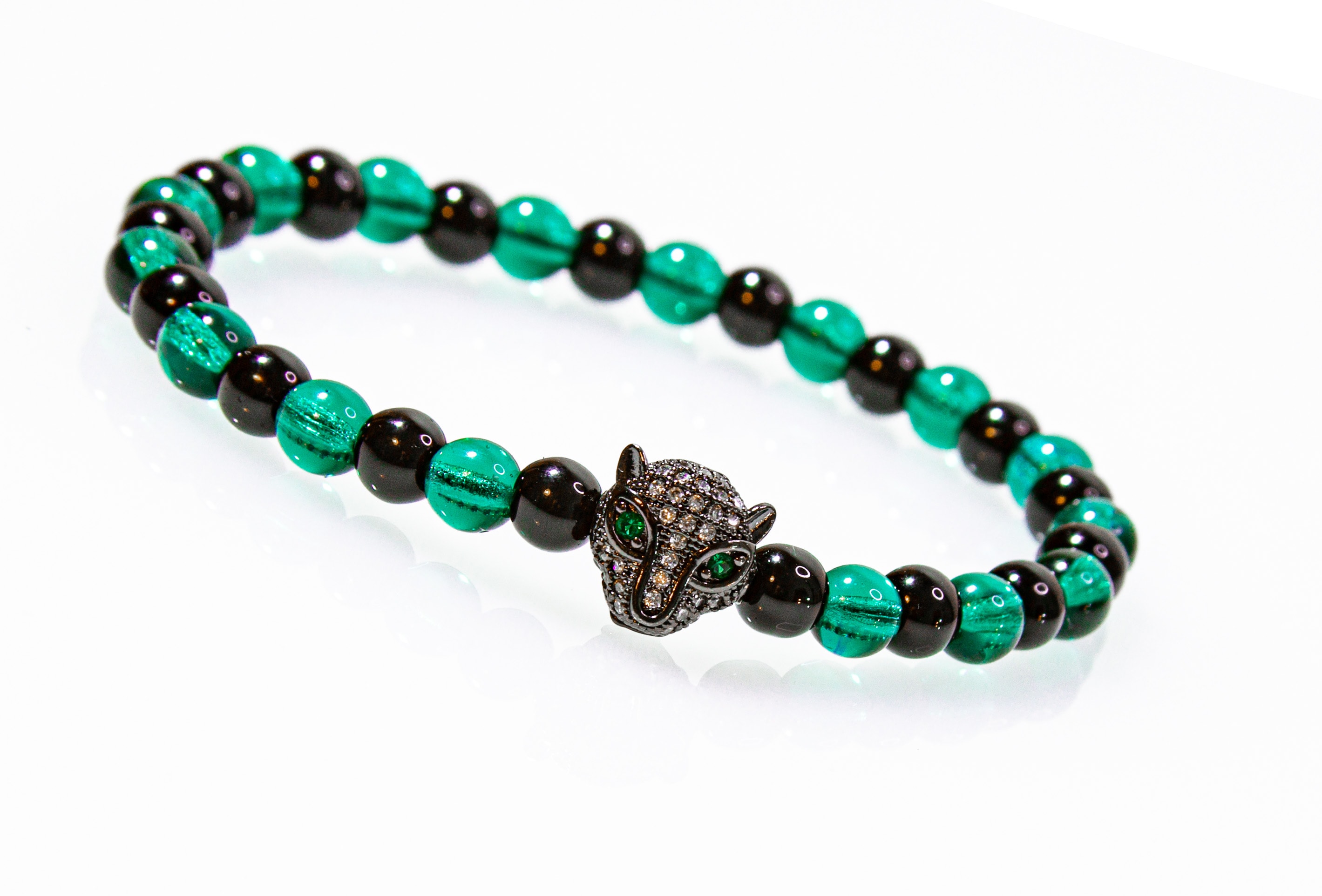 Luxusní Náramek Panter🐆 Luxusní náramek panter zaujme na první pohled svou originalitou a jedinečností. Svým zezřením působí spíš jako pánský náramek nicméně nabízíme jej i jako unisexový. Hlava pantera je krásně propracovaná včetně temně zelených očí, které mají stejnou barvu jako korále na náramku... celý popis