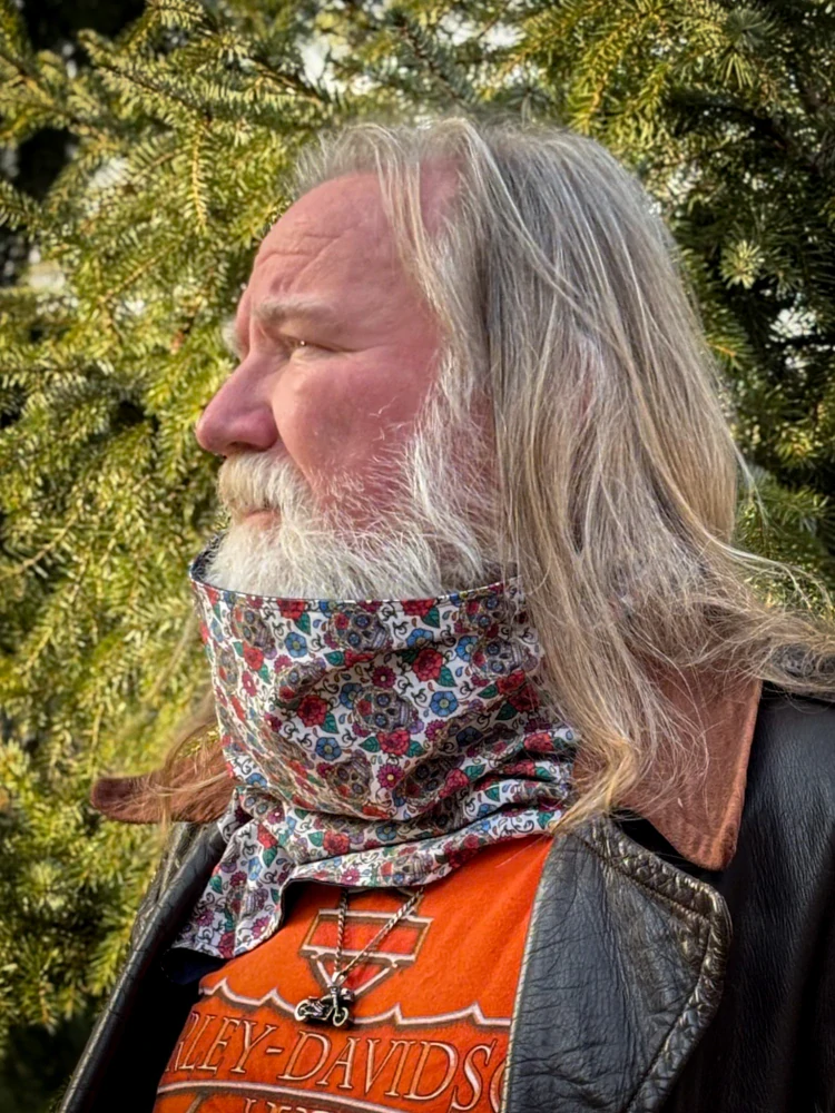 Oboustranný motorkářský šátek s ikonickým motivem lebek inspirovaným mexickým svátkem Día de los Muertos. Vyrobený ze 100% bavlny pro maximální pohodlí a styl.