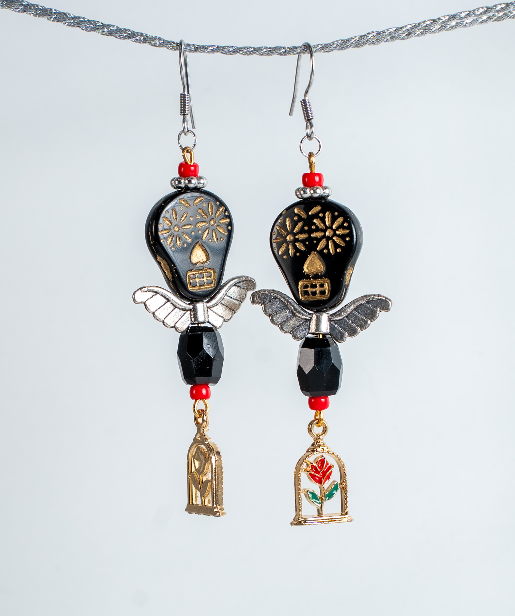 Náušnice růže lebka jsou černozlaté lebky v kombinaci s růží. 💀✨
