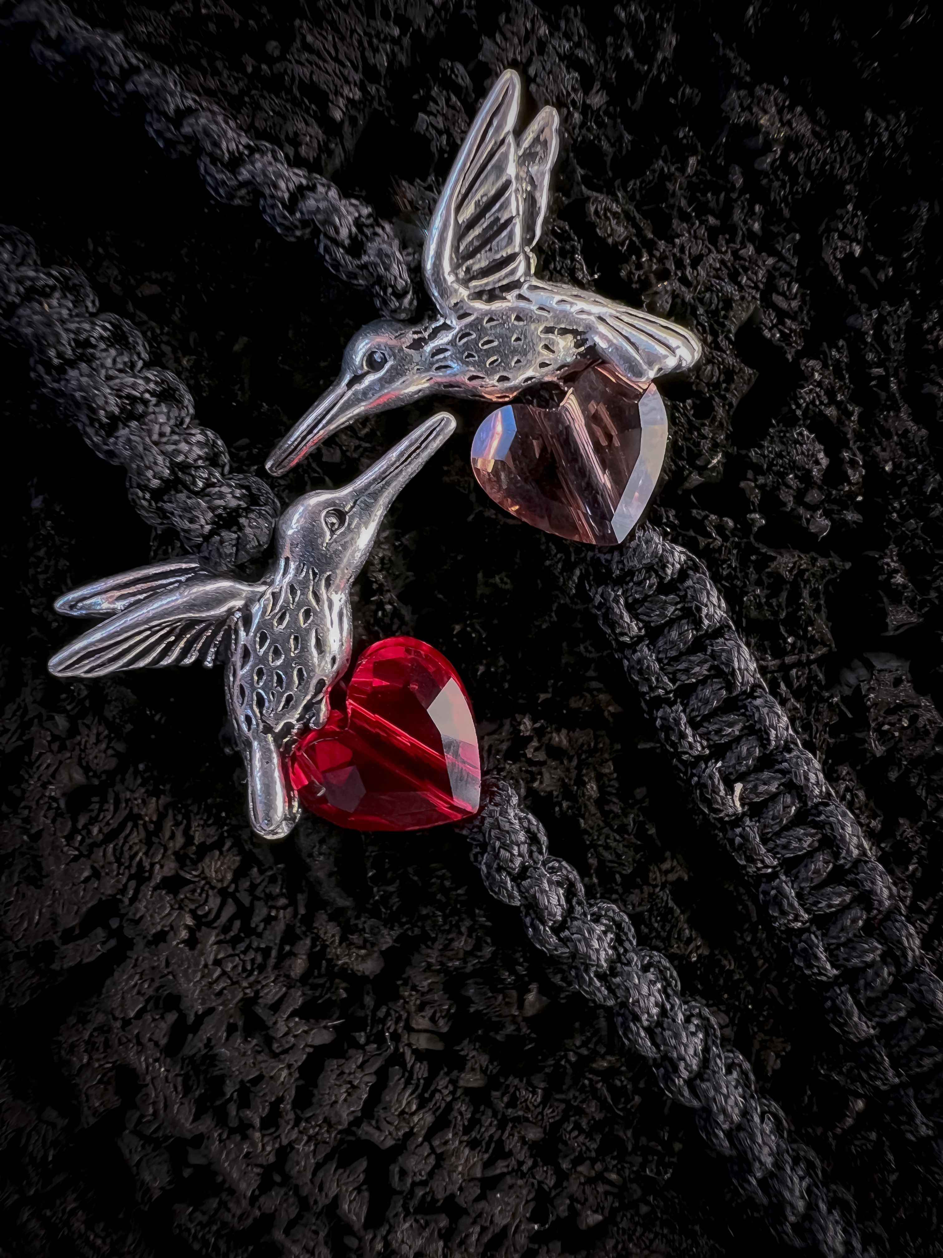 Základem je krásný šperk kolibříka sedící na rubínovém srdci swarovski.