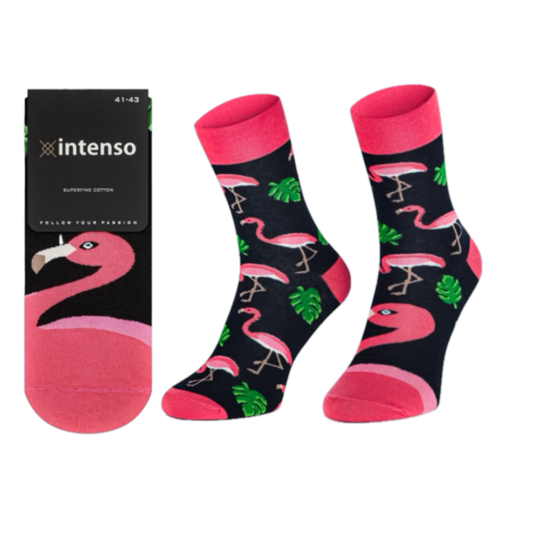 Ponožky Plameňák od značky INTENSO z řady nesourodých ponožek, spojují výjimečné moderní motivy navržené s prvotřídní kvalitou.