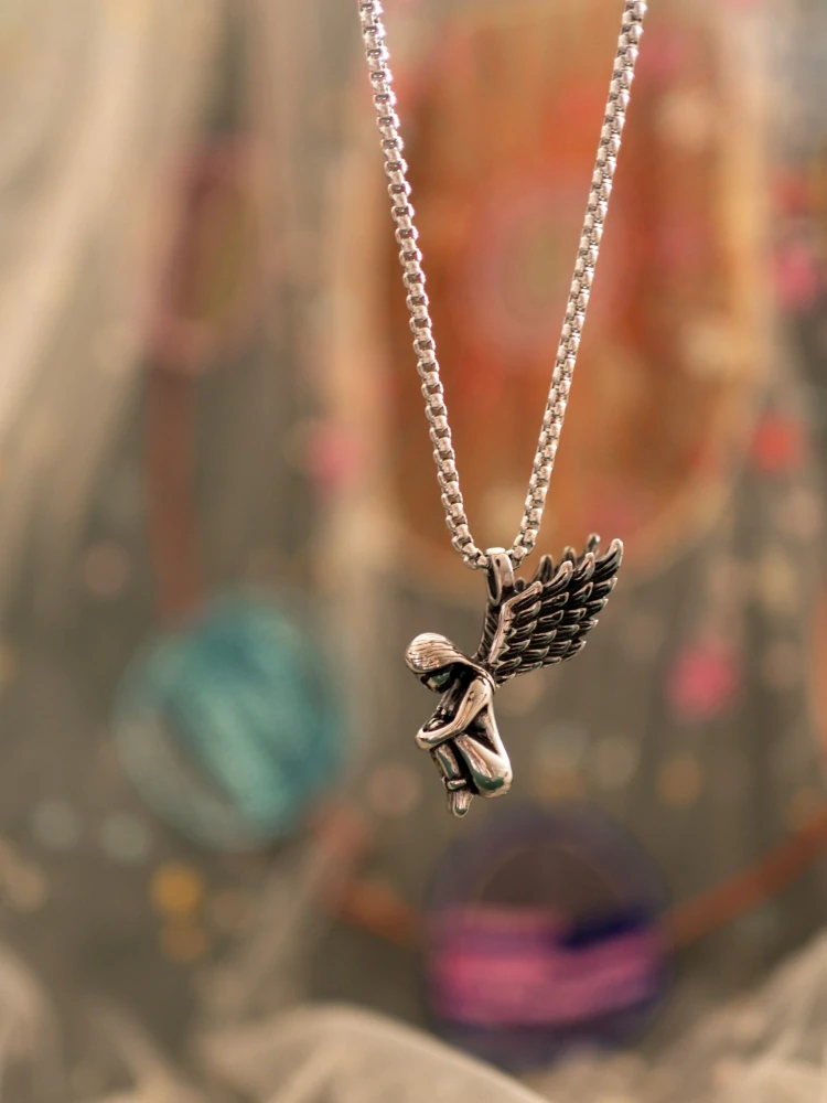 Objevte kouzlo jemnosti a elegance s naším přívěskem anděla z chirurgické oceli 316L.