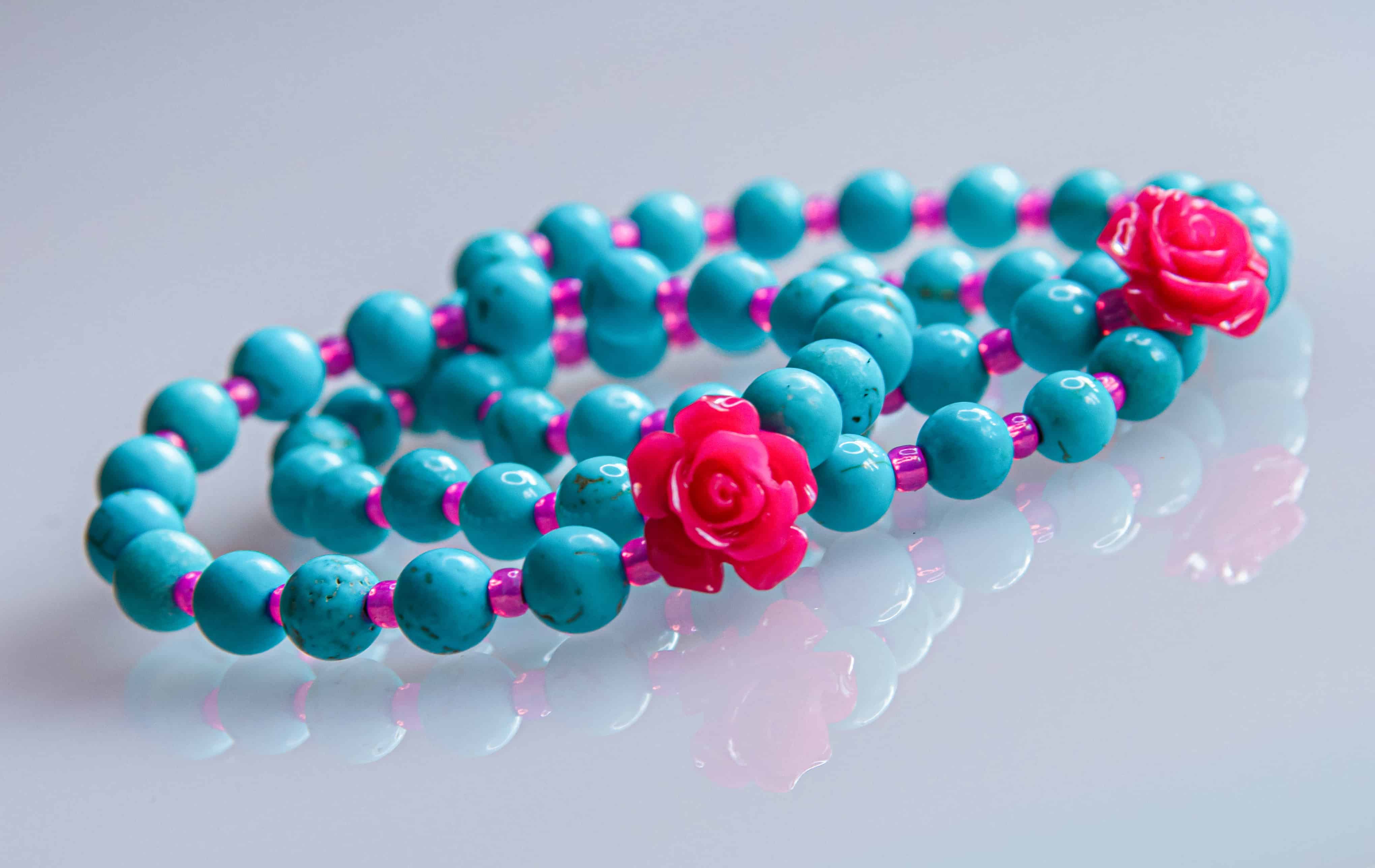 Objevte krásu přírody s naším unikátním náramkem zdobeným růží a sleněnými korálky.