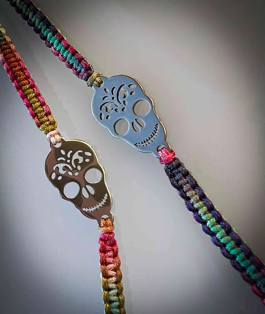 Náramek s lebkou z dia de muertos je vyroben z kvalitního nerezu a je zdoben tradičními motivy z mexického svátku Dia de los Muertos.