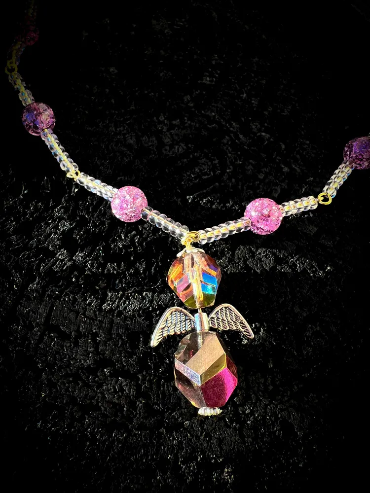 Růženci dominuje skleněný Andělíček vyrobený z skleněných krystalů tradiční české výroby. Andílek je považován za nadpřirozenou duchovní bytost, symbolizuje ochranu, bezpečí, víru v něco vyššího, spiritualitu. Připomíná magický svět andělů kolem nás a zároveň je vyjádřením lásky, starosti a péče o milované osoby.