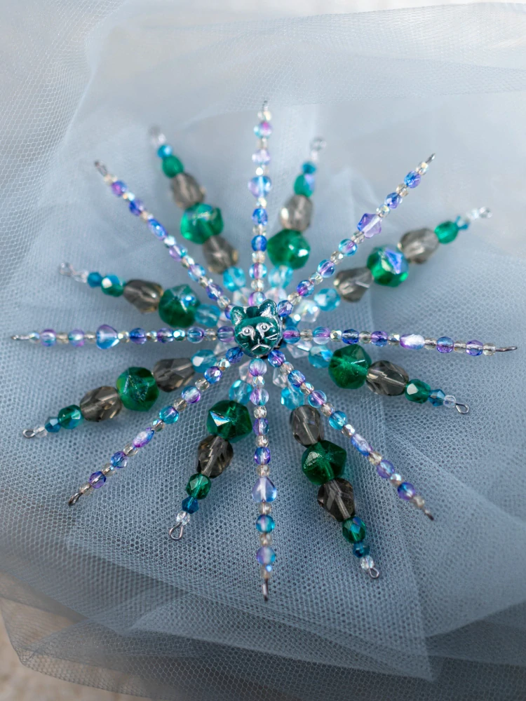 Vánoční ozdoba kočka je ručně vyráběná v naší malé dílně ze skleněných krystalů české výroby.