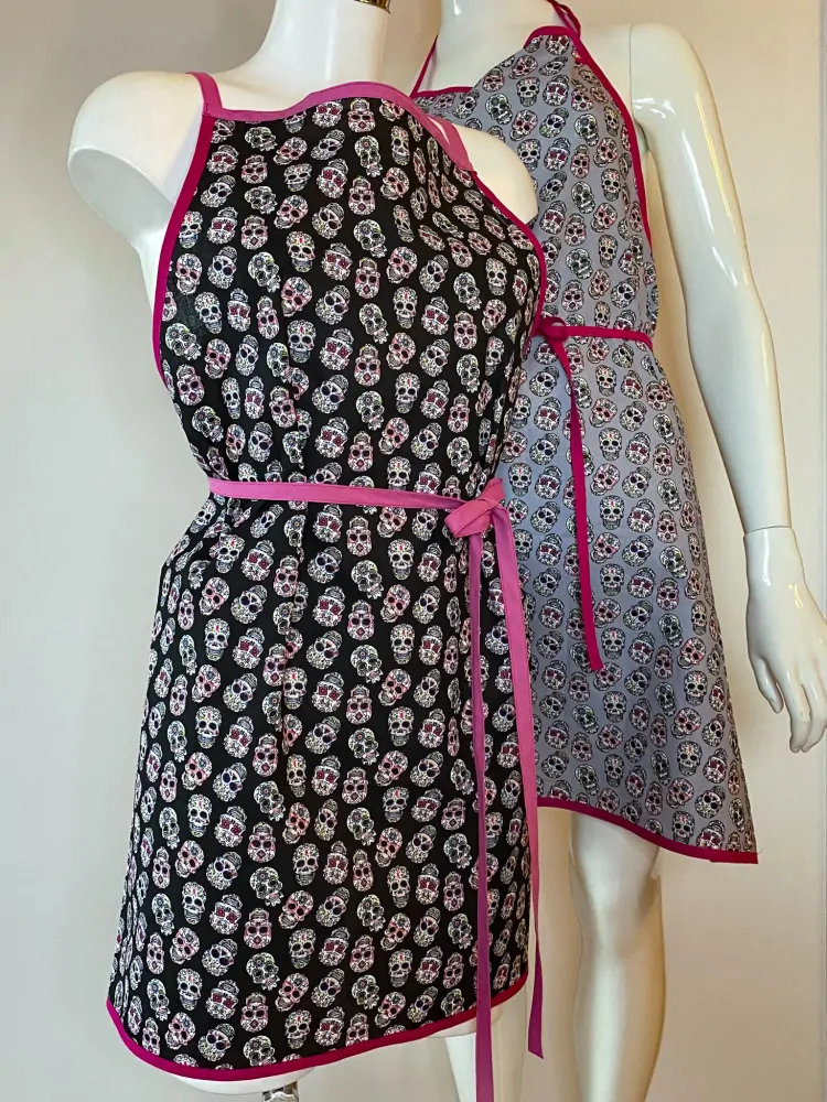 🌟 Unikátní Design: Každá zástěra je vyrobena z 100% bavlny a zdobí ji nevšední motiv Mexických lebek.